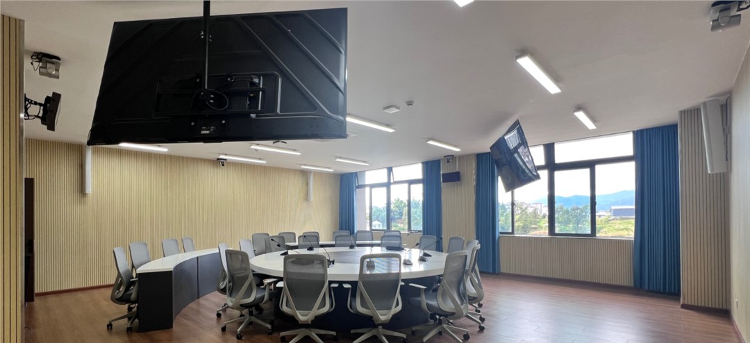 音箱組合: 體積龐大,需要承重極高的專業(yè)吊點(diǎn)和復(fù)雜的機(jī)械結(jié)構(gòu)。在層高較低(<5米)的會(huì)議室中不適合。