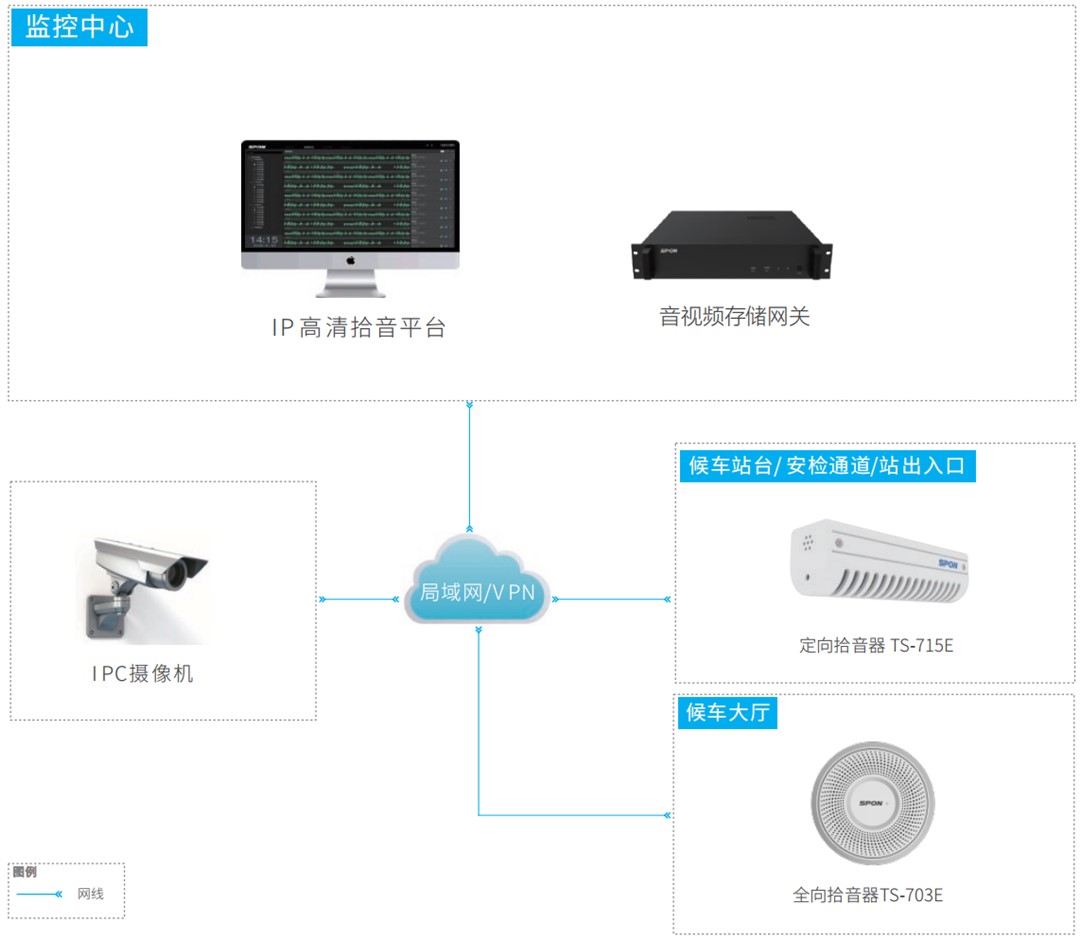 在現(xiàn)代化城市的脈絡(luò)中,機(jī)場(chǎng)、火車(chē)站、地鐵站等大型交通樞紐不僅是人流物流的集散地,更是城市安全防范與公共服務(wù)的前沿陣地。長(zhǎng)期以來(lái),這些場(chǎng)所的安防建設(shè)主要依賴(lài)于高清攝像頭的“看得見(jiàn)”,但在處理復(fù)雜糾紛、提升服務(wù)質(zhì)量以及應(yīng)對(duì)突發(fā)公共安全事件時(shí),單純的視頻監(jiān)控往往面臨著“啞劇”的尷尬。此時(shí),高保真拾音器的引入,實(shí)現(xiàn)了從“無(wú)聲監(jiān)控”到“音視頻同步”的跨越,其作用與意義不可替代。